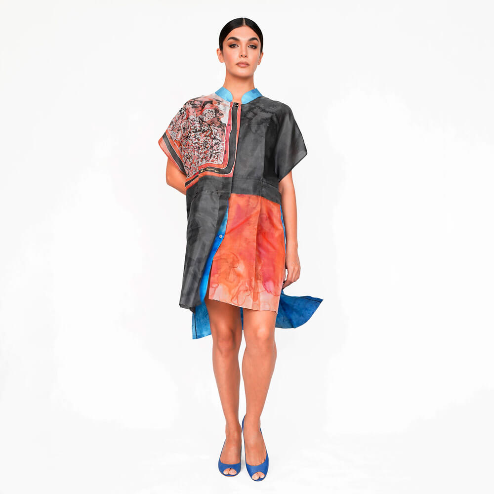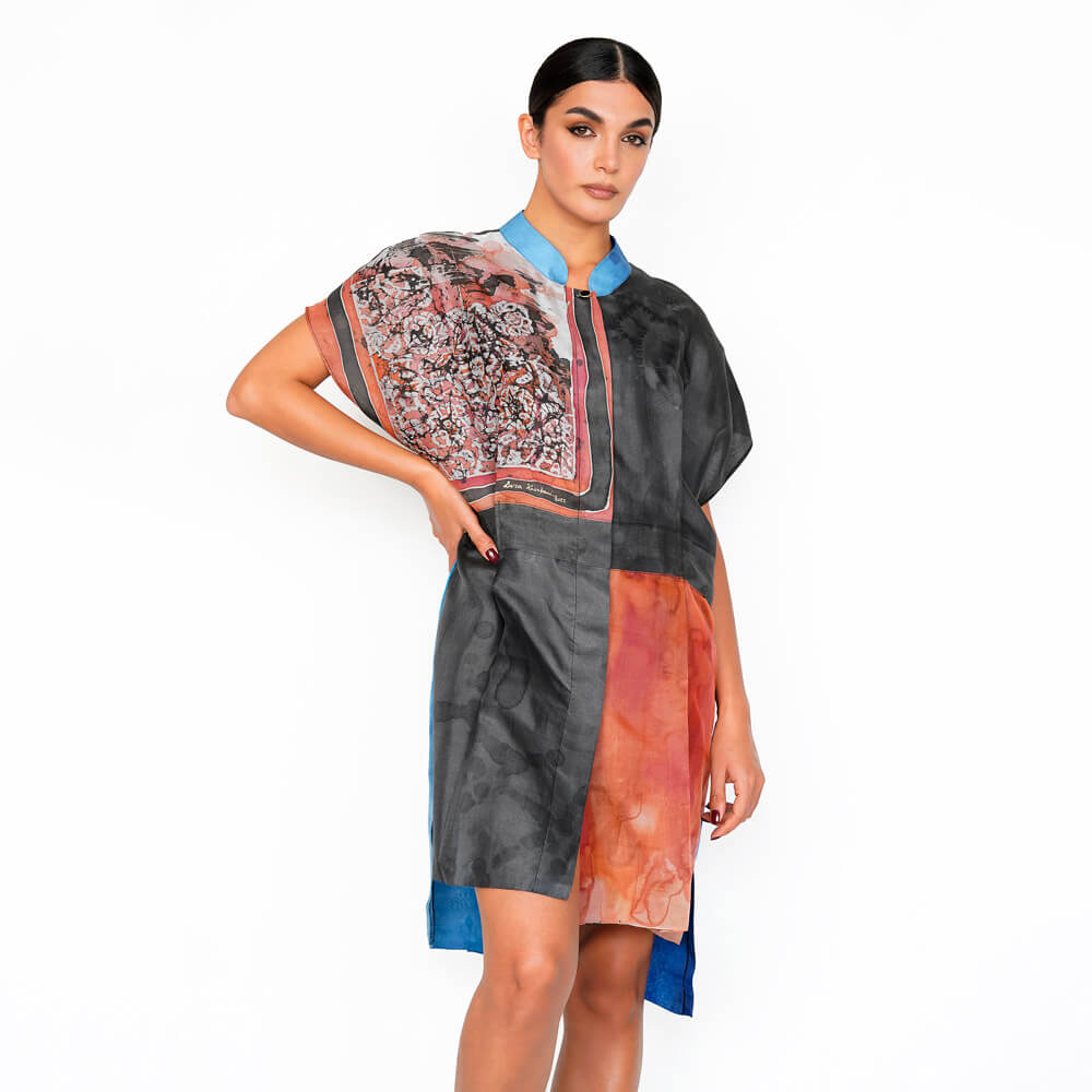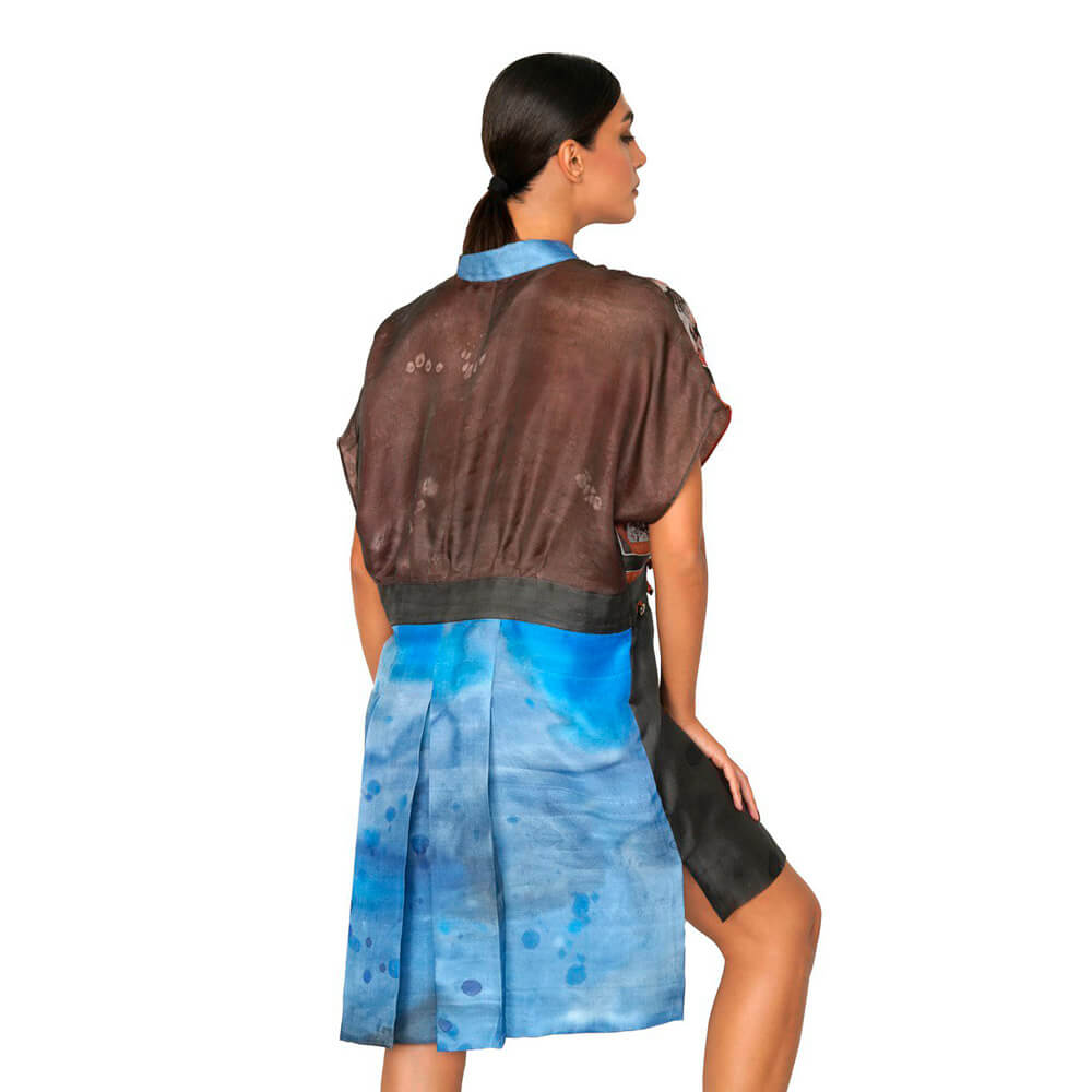 Each Top known as a piece of art.The artist used silk fabric as a convas to